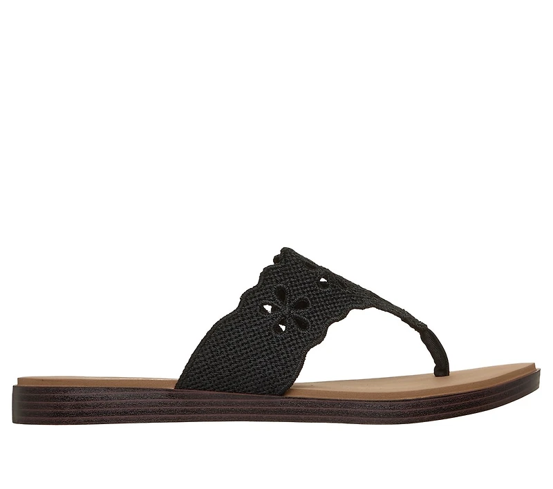 Beachy and breezy is the look wearing Skechers Summer Cove - Breeze By. This vegan flip-flop sandal features a scalloped canvas upper with embroidered floral cutouts and a Luxe Foam® cushioned comfort footbed.