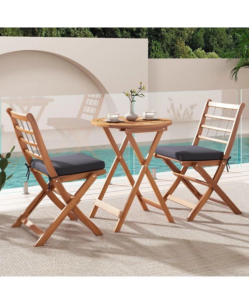 sumyeg 3-Piece Acacia Wood Patio Bistro Set with Seat Cushions