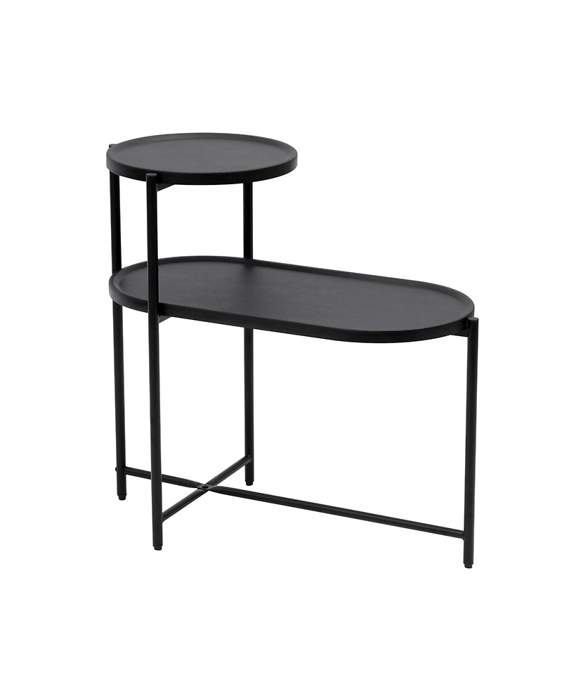 Modern black round coffee table with two-tier storage. Sturdy metal frame and Mdf construction provide durability, while the versatile design fits small spaces as coffee table, side table, or nightstand