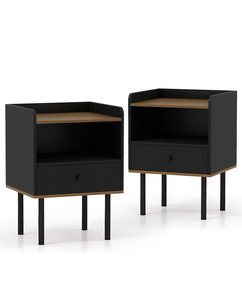 sumyeg Set of 2 Nightstands with Drawer, 3-Tier Sofa Side Tables with Open Storage Shelf