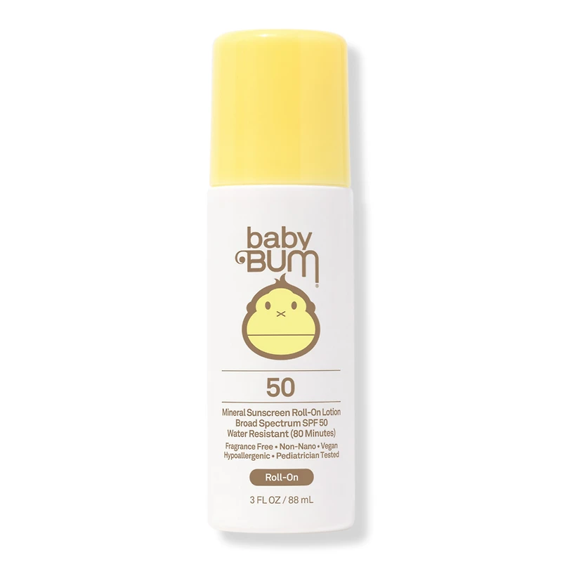 BABY BUM ROLL ON MINERAL SNSCRN - SPF 50. Benefits: Baby Bum SPF 50 Sunscreen Roll-On Lotion has a lightweight mineral based formula with non-nano zinc, to help make it easy to protect squirmy little ones from harmful UV rays. Fragrance Free for Sensitive Skin. Mineral Sunscreen for Babies. Features: Pediatrician Tested. Water Resistant (80 minutes). Made without Parabens. Gluten Free. Hawaii Act 104 Compliant: Made without Oxybenzone & Octinoxate. Key Ingredients: Vitamin E: An antioxidant that helps to neutralize free radicals, which are the main cause of premature skin aging.