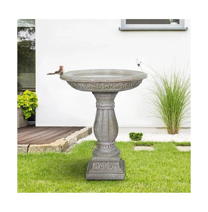 SunJet 23.8 Inch High Concrete Bird Bath with Carved Pedestal – Birdbath Sturdy & Elegant Design, Stone-Like Texture in Bloomington, MN