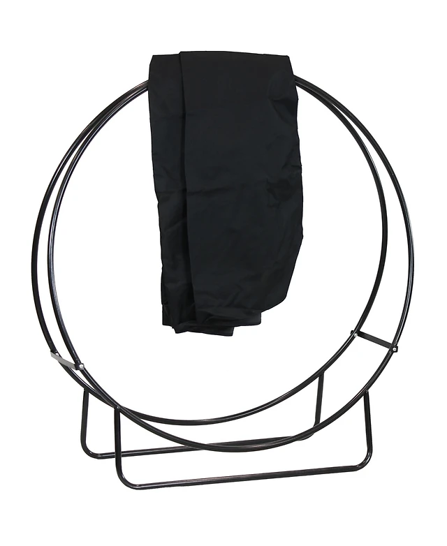 Sunnydaze Decor in Powder-Coated Steel Firewood Log Hoop Rack with Black Cover