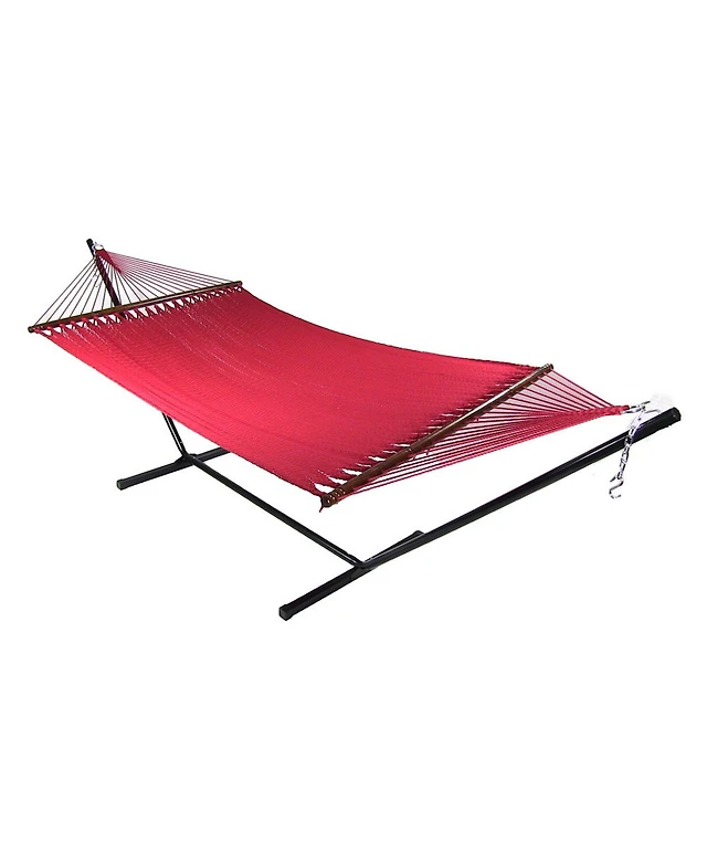 Sunnydaze Decor Outdoor 2-Person Double Polyester Rope Hammock with Wood Spreader Bar and 15ft Black Steel Stand