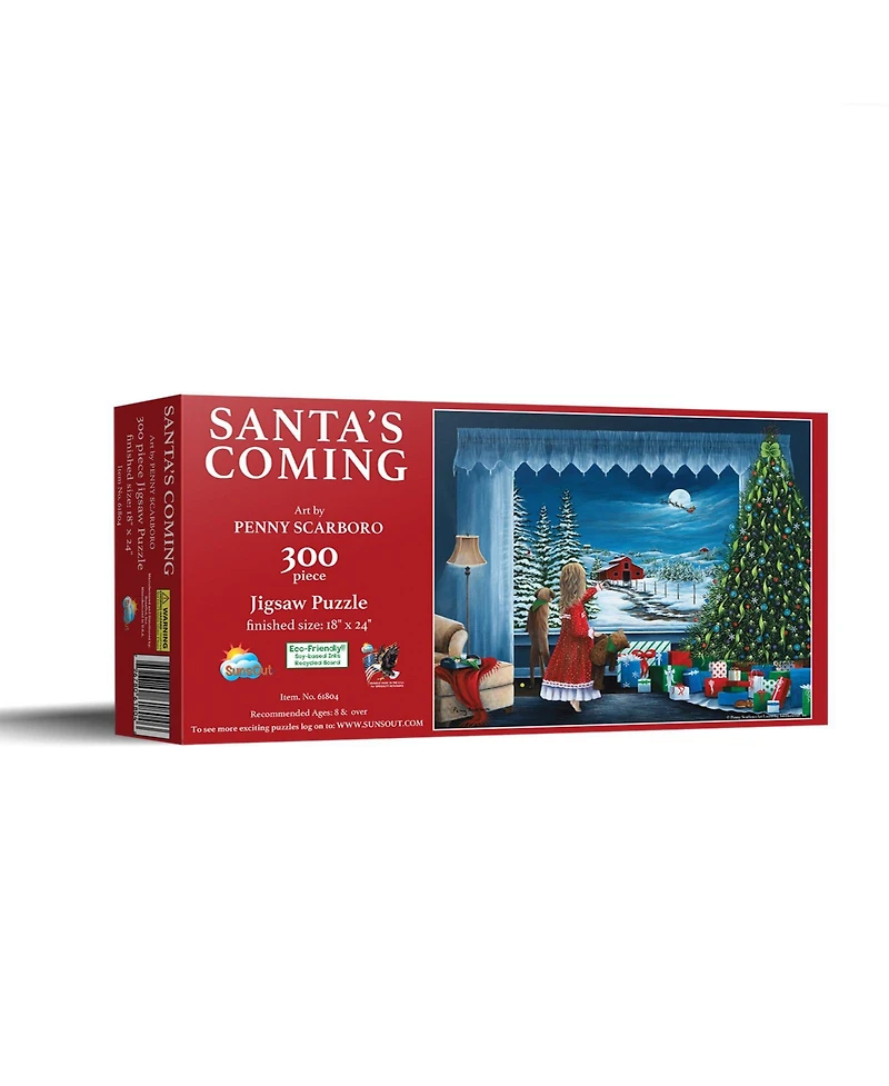 Enjoy a rewarding puzzle experience with the SunsOut 300 Piece Jigsaw Puzzle for adults titled "Santa's Coming." Featuring artwork by Penny Scarboro, This puzzle showcases Christmas themes, combining expressive artwork and detailed visual elements that appeal to collectors and hobbyists. The imagery adds depth and interest for fans of Christmas-inspired designs. It also incorporates seasonal elements inspired by Christmas, adding festive appeal to the completed display. The completed size is 18" x 24", offering a visually appealing display once completed. Each piece fits securely to support a smooth and satisfying puzzling experience. For adults and ages 15 and older.
