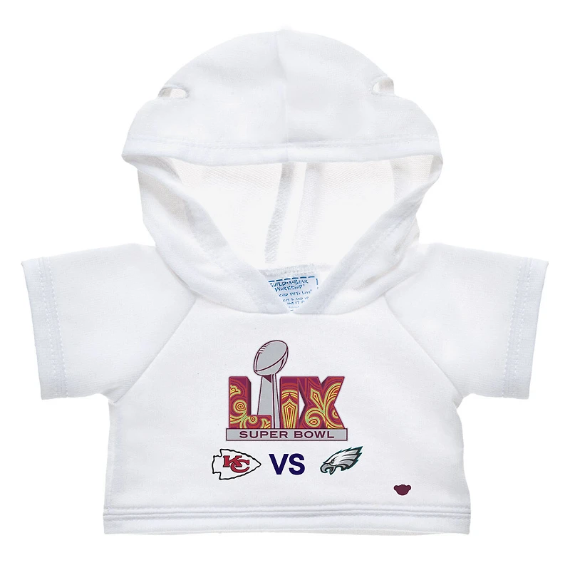 The year's biggest game is finally here! Commemorate all the action of Super Bowl LIX in New Orleans with this bear-sized hoodie for your furry friend. The commemorative hoodie features the Super Bowl LIX logo with the Kansas City Chiefs and Philadelphia Eagles team logos facing off.