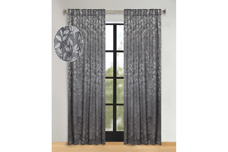 Superior Leaves Modern Bohemian Back Tab Blackout Curtain Set