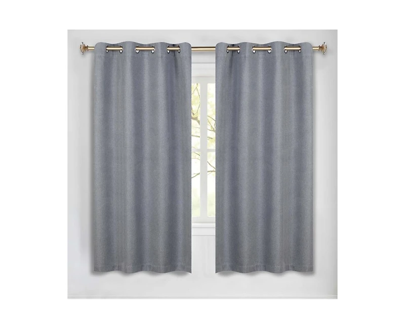 Transform your home into a cozy retreat with the Nyan 100% Blackout Curtain Set. Crafted from Polyester, this set includes two durable panels that elevate your space. The grainy textured finish adds depth, while the thick fabric enhances insulation for both style and function. Featuring a sleek stainless steel grommet header and a three-layer design, these curtains provide premium blackout protection and thermal insulation to help maintain a comfortable room temperature. Available in a range of colors, they effortlessly complement your existing decor.