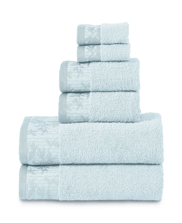 Superior Wisteria Floral Embroidered Jacquard Border Cotton 6 Piece Bath Towel Set