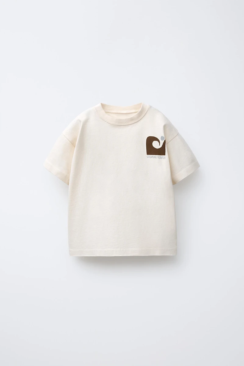 Round neck short sleeve T-shirt. Surf print on the front and back. 100% cotton fabric.