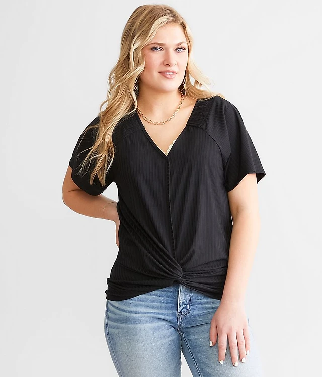 Surplice Twisted Hem Top