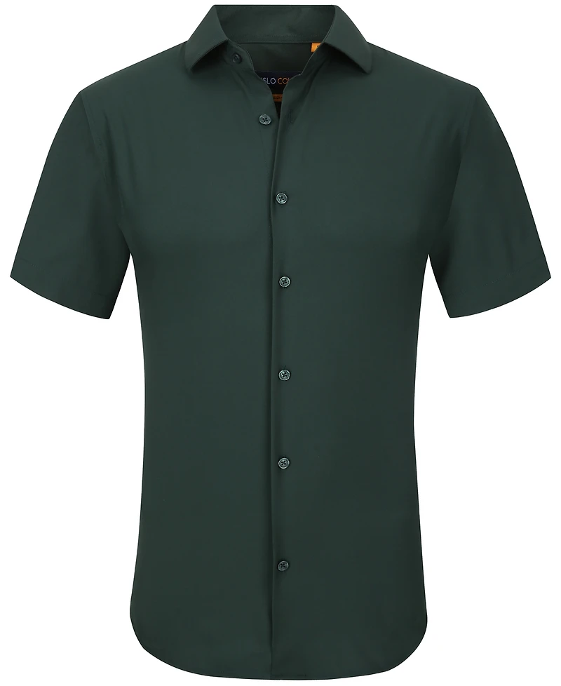 Suslo Couture Men's Slim Fit Performance Short Sleeves Solid Button Down Shirt