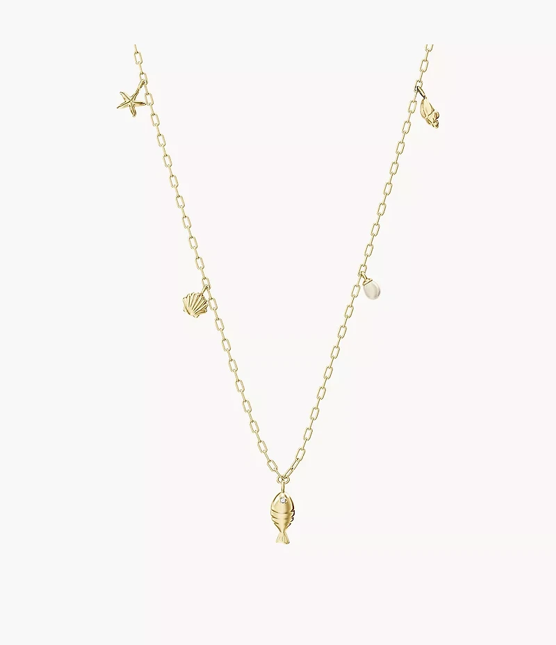 The Sutton By the Sea collection features delicate sea-inspired charms for a refined touch. A polished gold-tone brass chain anchors this station necklace, while the lobster clasp ensures secure, comfortable wear. Its versatile design effortlessly elevates any look.