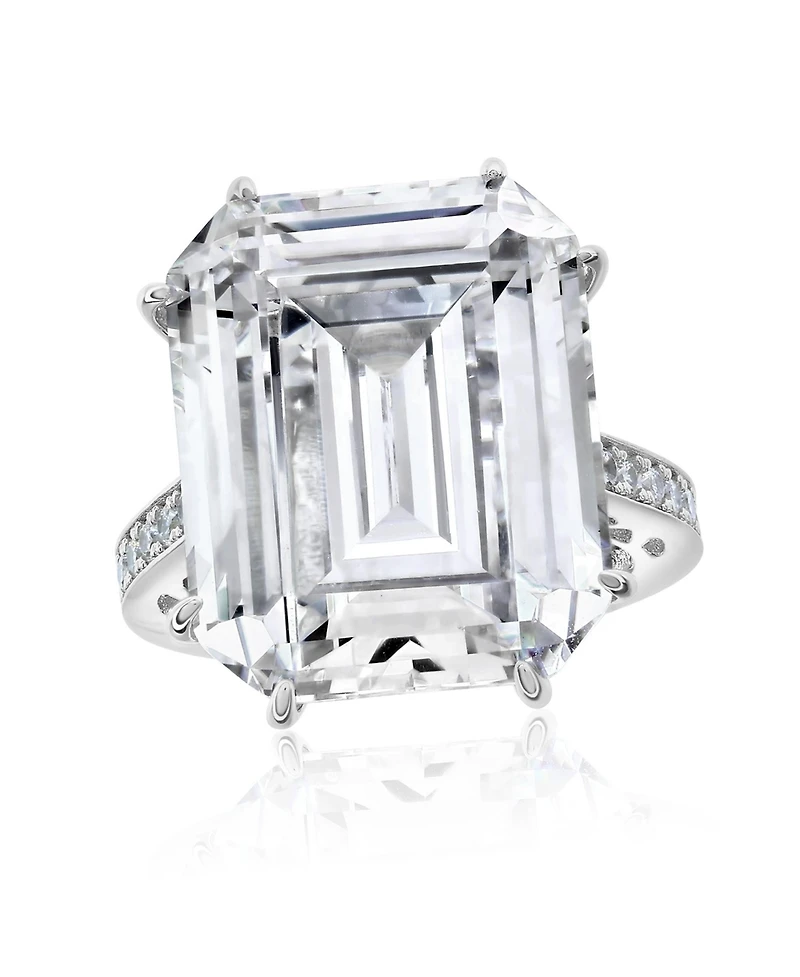 Suzy Levian New York Gala Collection Sterling Firework Emerald-Cut Cubic Zirconia Cocktail Ring