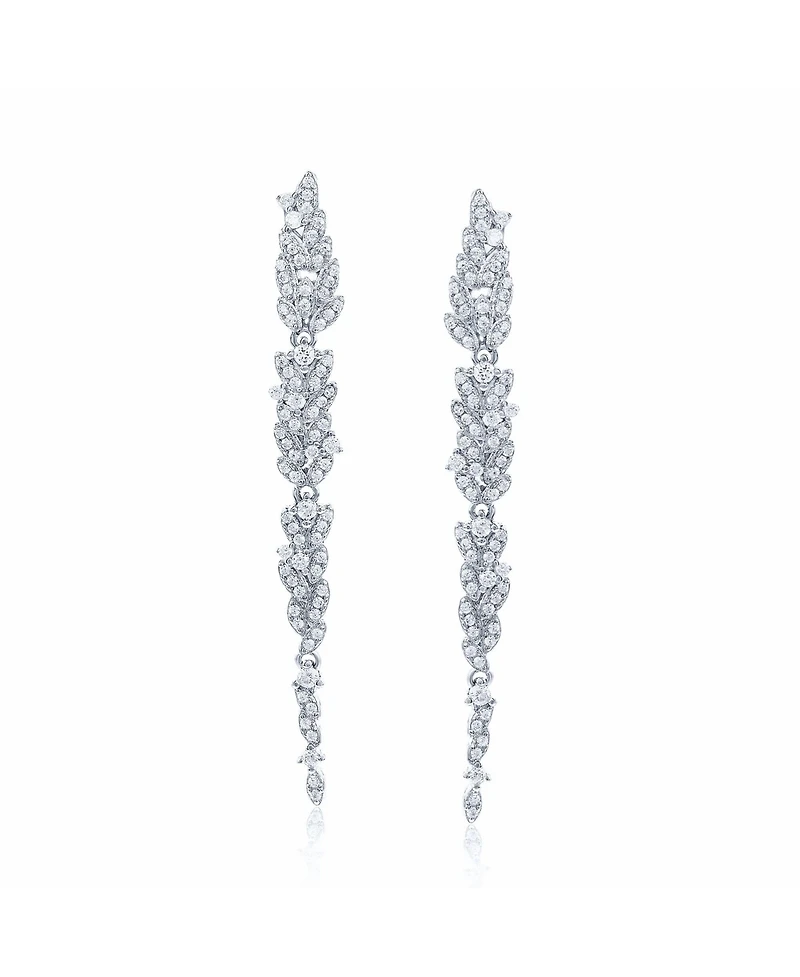 Suzy Levian New York Gala Collection Sterling Silver Cubic Zirconia Pave Leaf Drop Earrings