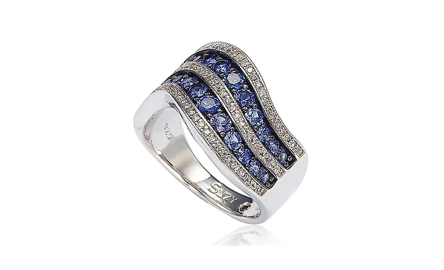 Suzy Levian New York Suzy Levian Sterling Silver Sapphire & Created White Sapphire Wavy Ring