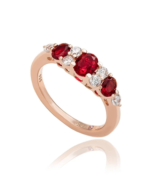 Suzy Levian Rose Sterling Silver Red White Cubic Zirconia Graduating Ring