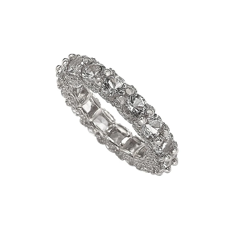 Suzy Levian Sterling Silver Cubic Zirconia Pave U-Shape Setting Eternity Band Ring