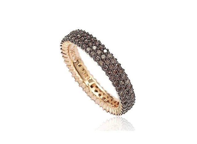 Suzy Levian Sterling Silver Cubic Zirconia Multi-Row Brown Eternity Band