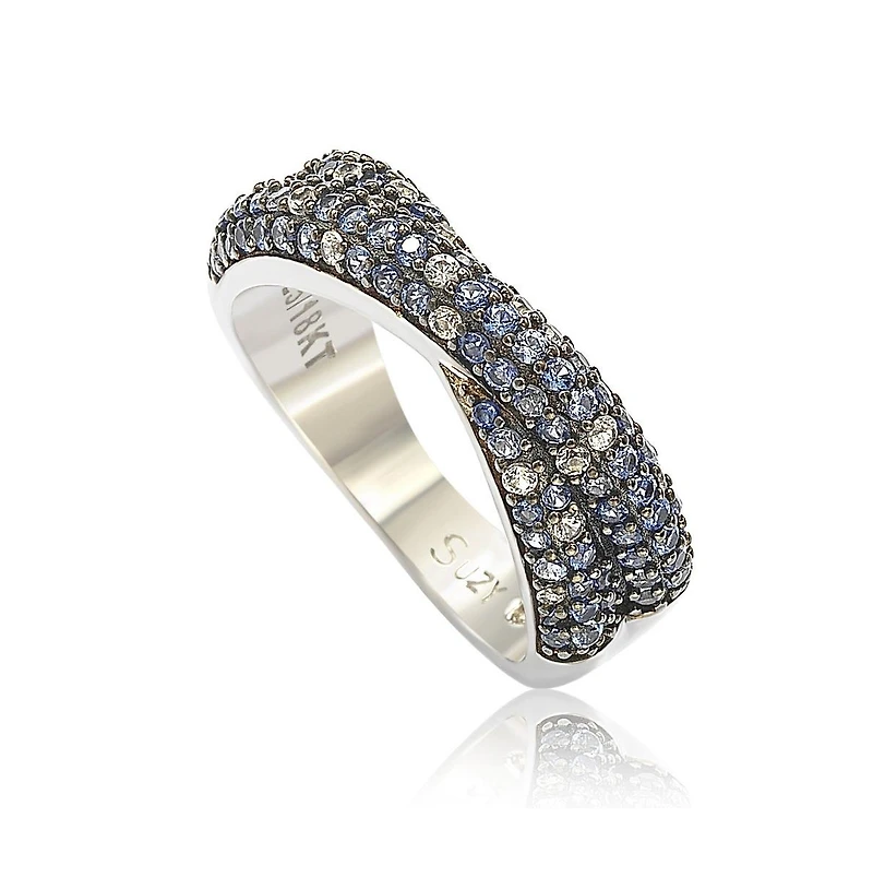 Suzy Levian Sterling Silver Sapphire & Created White Sapphire Pave Crossover Twist Band Ring in Bloomington, MN