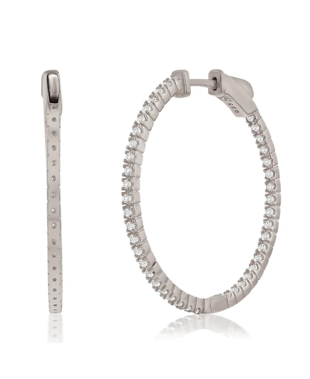 Suzy Levian Sterling Silver Cubic Zirconia Classic Large Hoop Earrings