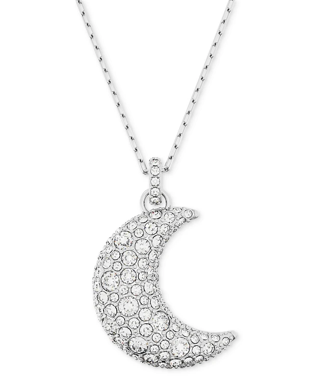 Swarovski Rhodium-Plated Pave Moon Pendant Necklace, 15-3/4" + 2-3/4"