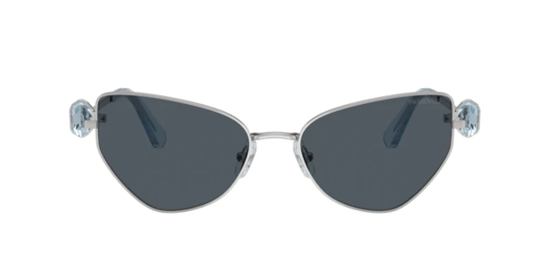 Elevate your look with swarovski sk7003. The irregular shape and polished metal frame, in a striking silver color, are adorned with strass for added sparkle. These sun shades feature solid dark grey lenses that provide excellent protection against the sun's glare. With their unique design and impeccable craftsmanship, these glasses are a must-have accessory for any fashion-forward individual.