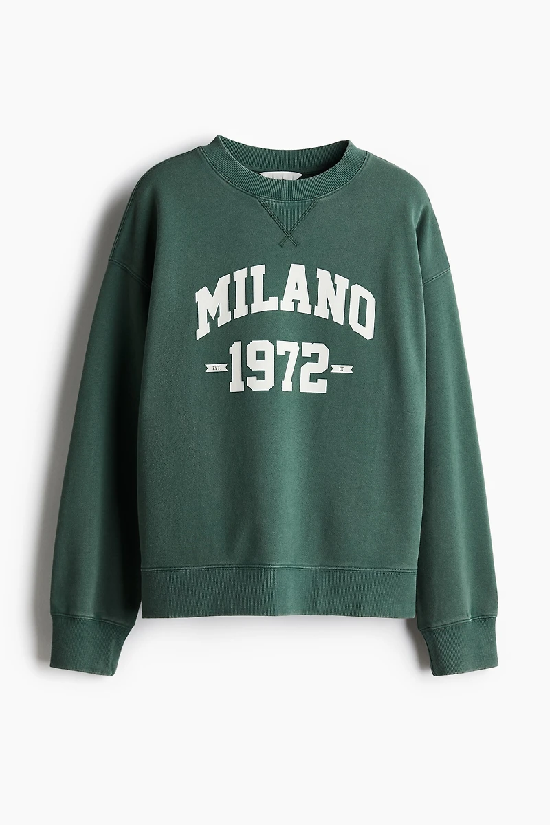 Oversized sweatshirt with a text motif at front and soft, brushed inside. Dropped shoulders, long sleeves, and ribbing at neckline, cuffs, and hem.