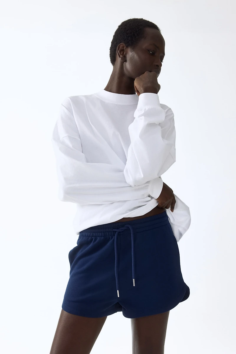 Lightweight sweatshorts in cotton-blend fabric. Drawstring and covered elastic at waistband, and discreet side-seam pockets.