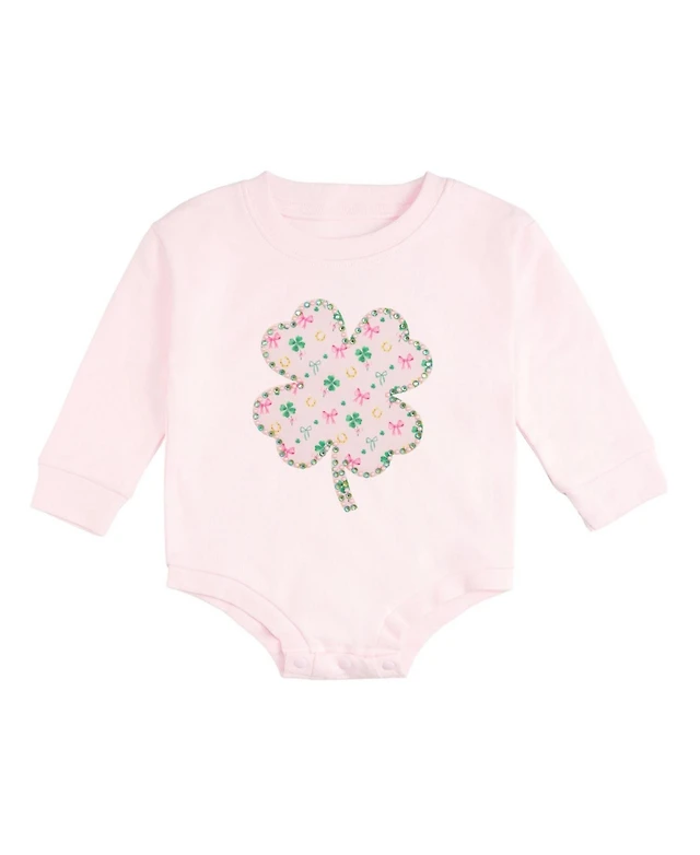 Sweet Wink Baby Girls Ditsy Shamrock Patch St. Patrick's Day Long Sleeve Romper