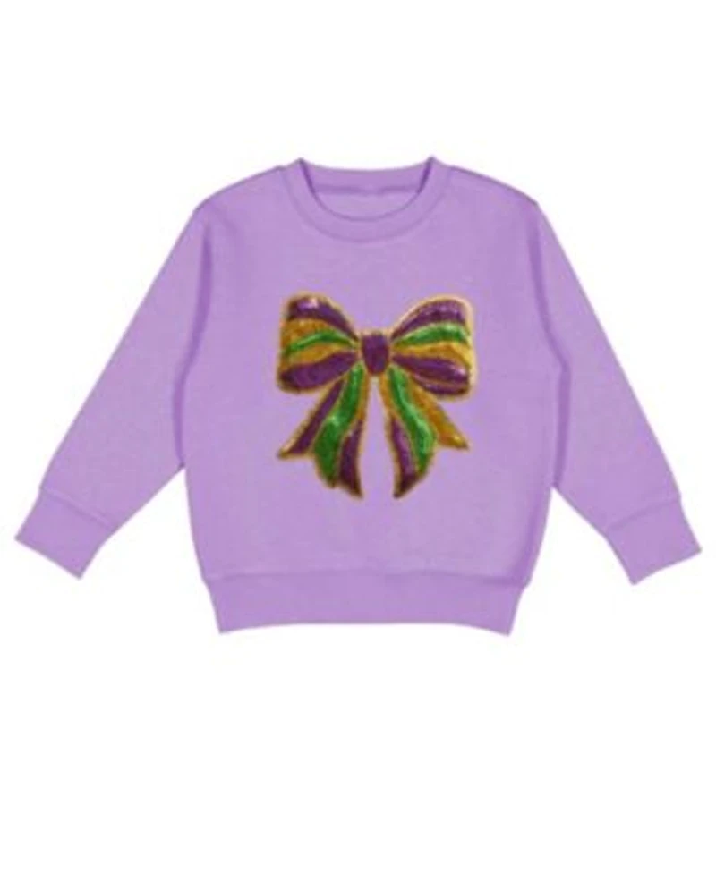 The Mardi Gras Sequin Bow Patch Sweatshirt is a fun and festive sweatshirt for any Mardi Gras celebration or everyday wear!