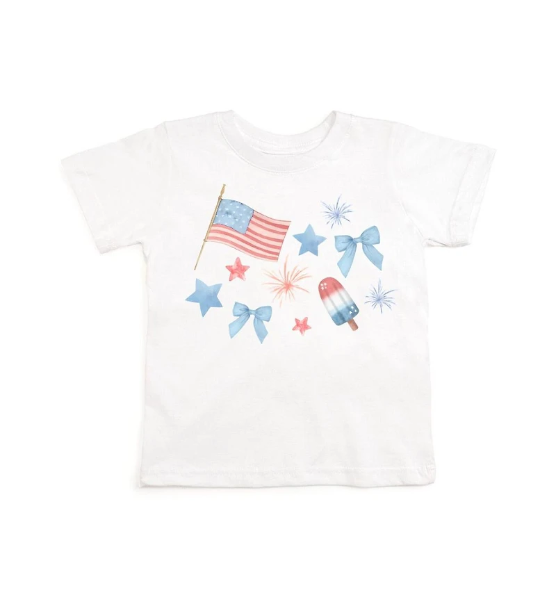 Bursting with red, white, and blue spirit, this festive tee is made for parade days, popsicle breaks, and every star spangled celebration in between.