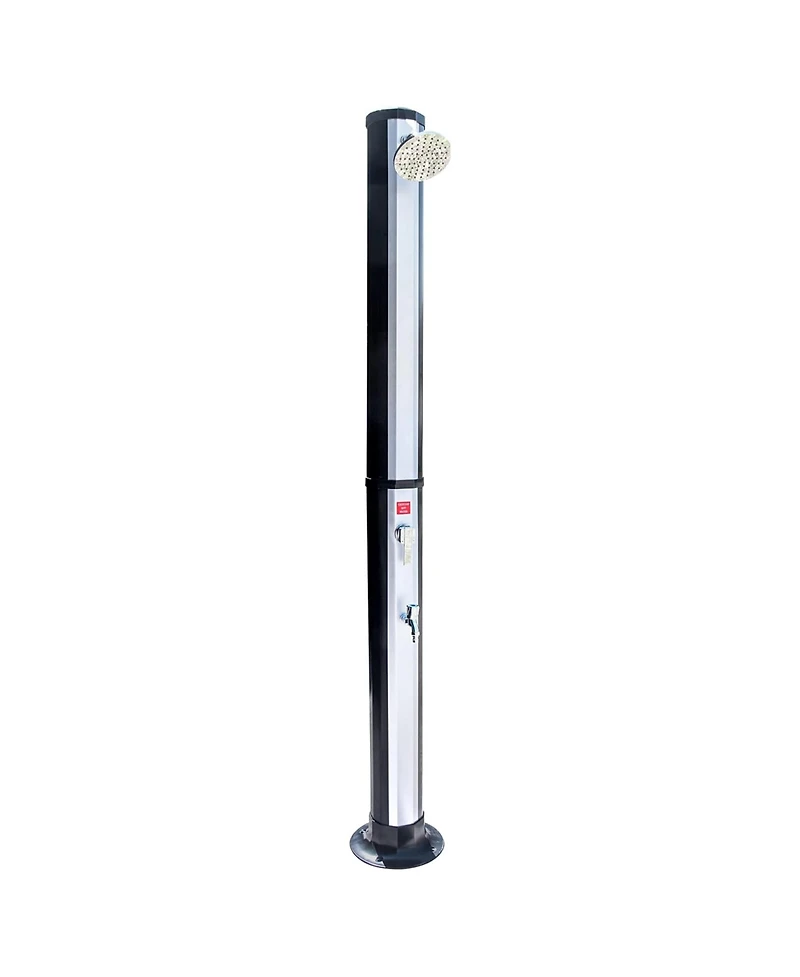 Upgrade your outdoor pool and spa experience with the Swimline HydroTools Niagara 7-Foot Solar Powered Rainfall Shower with 2-Section Tank, harnessing the sun's energy for an invigorating rinse. This innovative shower features a reinforced tank with excellent heat retention, providing warm showers long after sunset, thanks to an adjustable temperature control valve.With a generous 10-gallon water tank and easy hose adapter connection, you'll have a continuous supply of warm water, reaching up to 140°F. It includes an on-demand foot wash and pressurized rainfall head. The freestanding design comes with a bolt mounting system, compatible with most surfaces, and refilling the tank is easy with a garden hose. The 2-section design ensures hassle-free setup with minimal tools.Designed for elegance and durability, the HydroTools Niagara Solar Shower complements any outdoor space, offering seasons of relaxation, comfort, and sustainability.