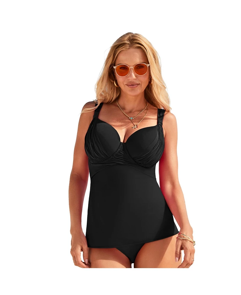 Swimsuits for All Women's Bra Drape Front Lightweight Underwire Tankini Top