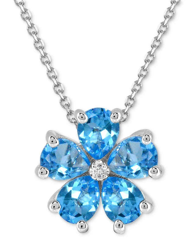 Swiss Blue Topaz (4 ct. t.w.) & Diamond Accent Flower 18" Pendant Necklace in Sterling Silver