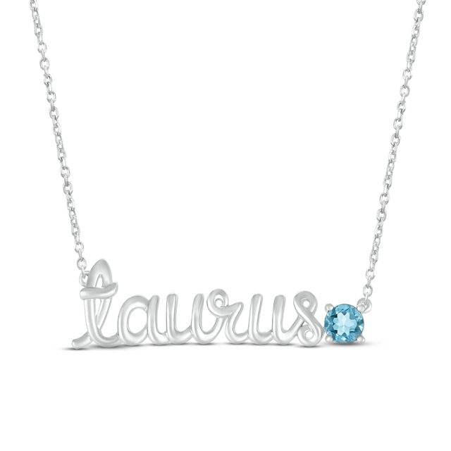 Swiss Blue Topaz Zodiac Taurus Necklace 10K White Gold 18"