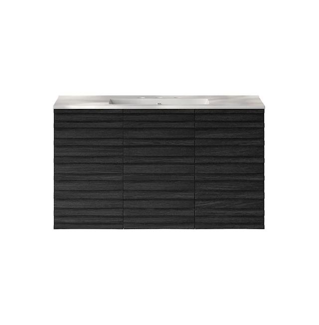 Swiss Madison 48" Wall-Mounted Bathroom Vanity, Black 3-Hole Widespread Double Basin Sink Top