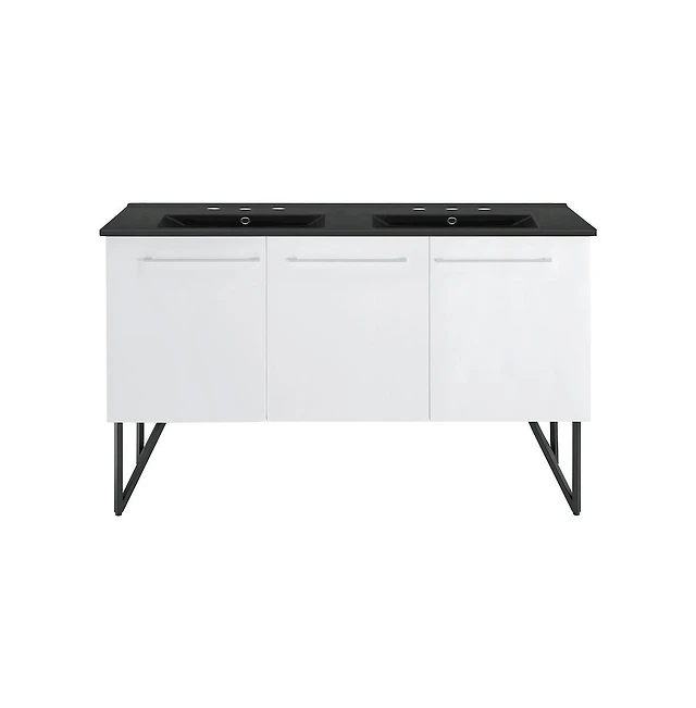 Swiss Madison 60 in. White, Double Basin Bathroom Vanity, Black, 3-Hole Sink Top