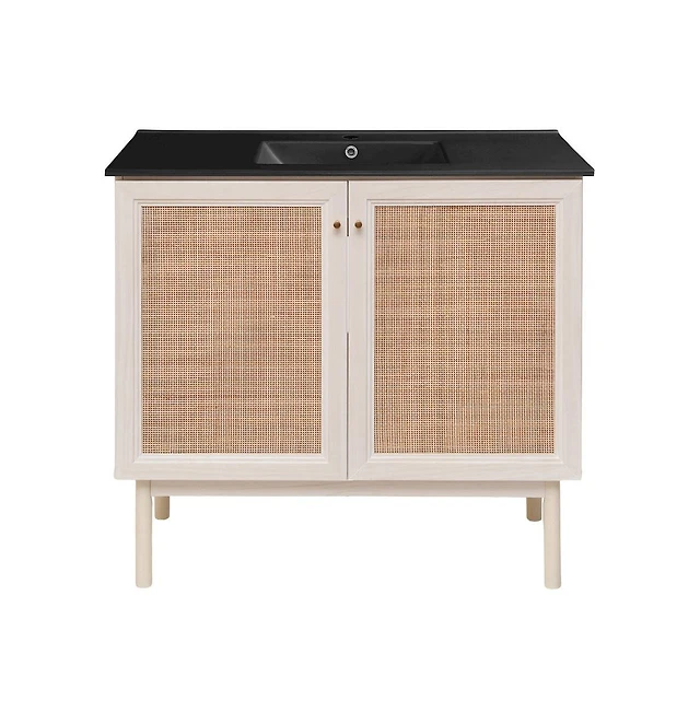 Classe 36" Freestanding Bathroom Vanity in Black Oak with Black Sink Top