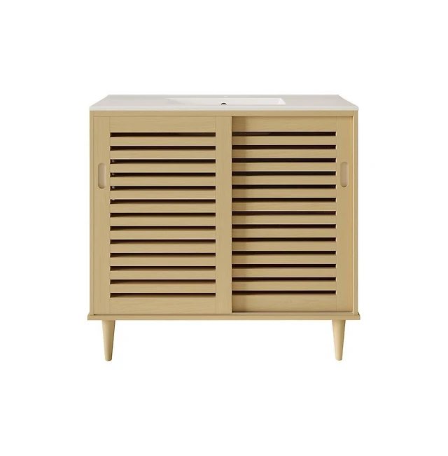 Swiss Madison Delice 36" Freestanding Bathroom Vanity in Natural Oak with Sink Top