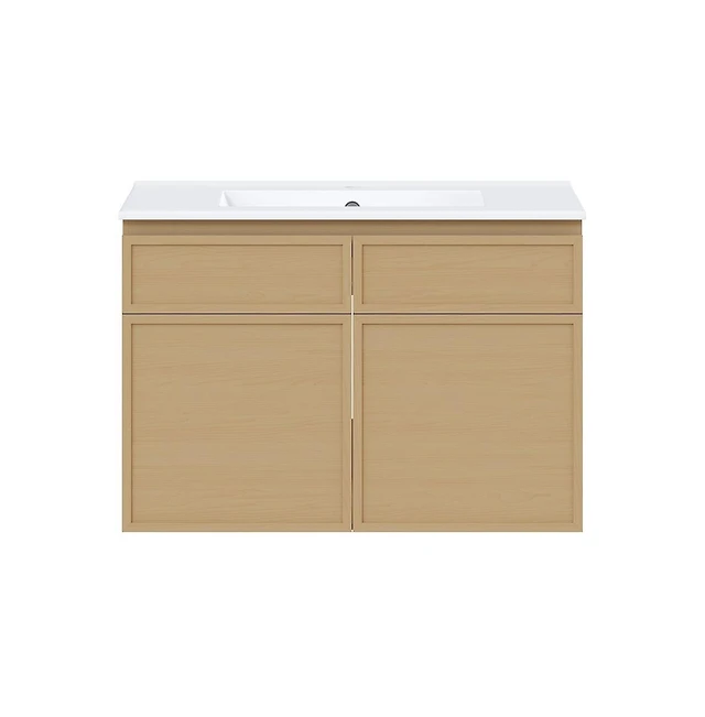 Swiss Madison St. Tropez 36" Wall-Mounted Bathroom Vanity in Natural Oak with Sink Top