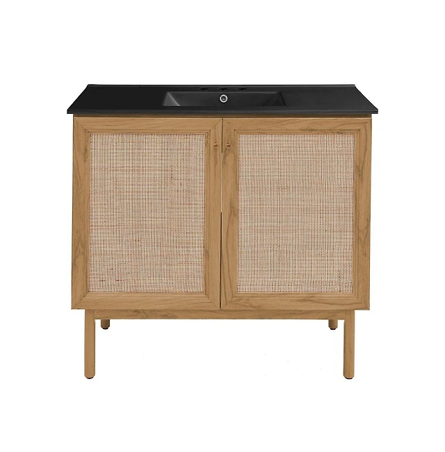 36" Freestanding Bathroom Vanity in Golden Oak, Black 3-Hole Widespread Sink Top