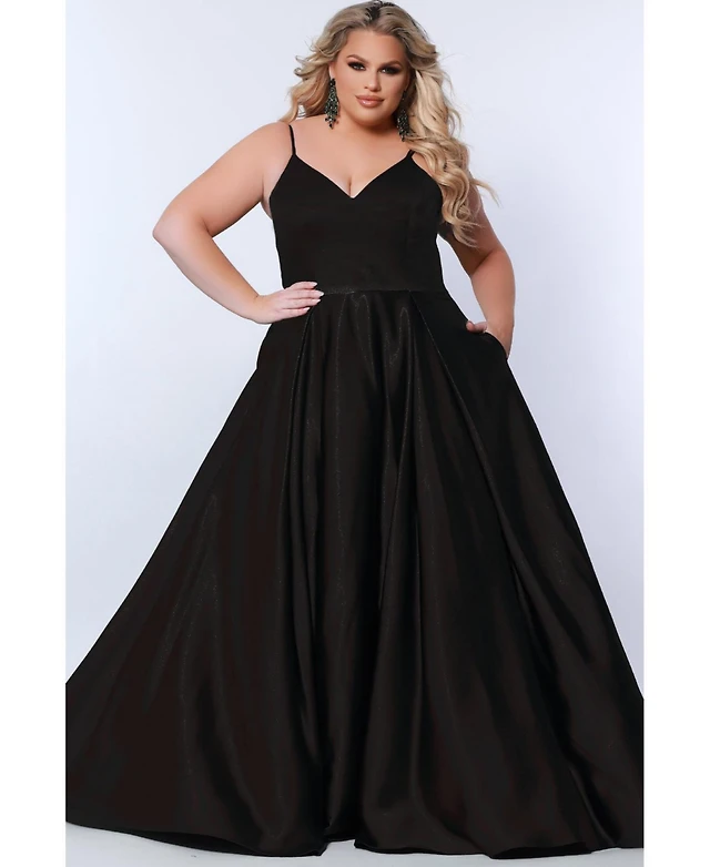 Sydney's Closet Women's Fitted V-neck Spaghetti Strap Plus Evening Gown