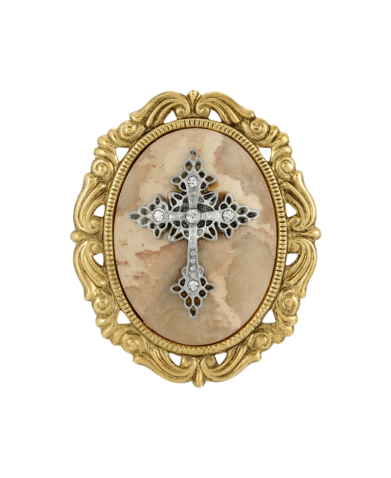 Symbols of Faith 14k Gold Dipped Brown Obsidion Oval BroochSymbols of Faith 14k Gold Dipped Brown Obsidion Oval BroochSymbols of Faith 14k Gold Dipped Brown Obsidion Oval Brooch
