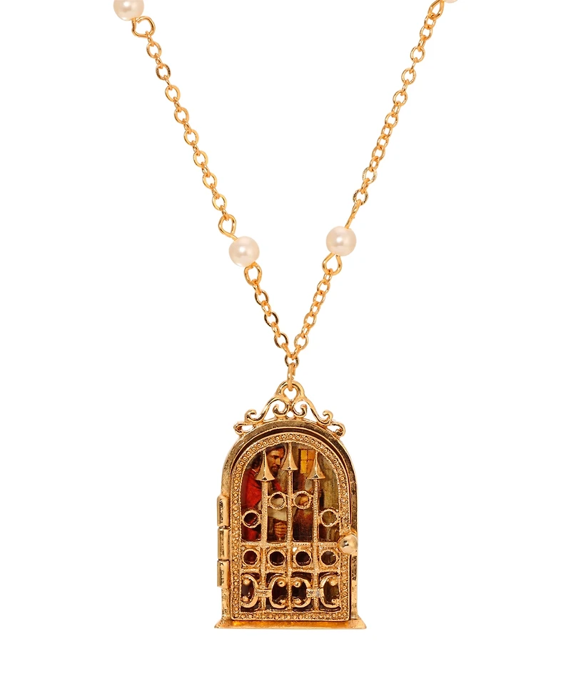 Symbols of Faith Gold Tone Jesus Decal Locket Faux Pearl Chain Necklace