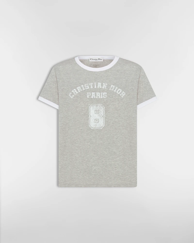 The T-shirt is a creation with modern appeal. Crafted in white cotton and linen jersey, it showcases the Christian Dior Paris signature on the front and black trim on the crew neck and sleeve edges. The classic design will elevate any outfit throughout the year.