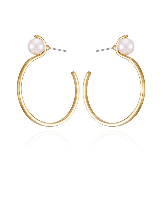 T Tahari Gold-Tone Imitation Pearl Open Hoop Earrings