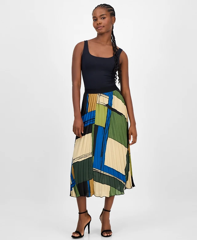 I.n.c. International Concepts Women's Printed Pleated Midi Skirt, Macy's Exclusive