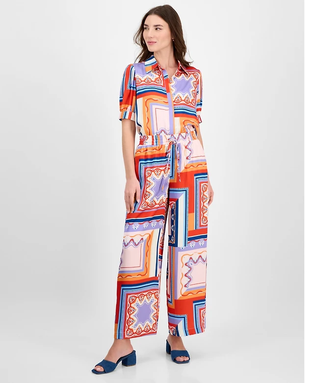 T Tahari Women's Printed Wide-Leg Pull-On Pants
