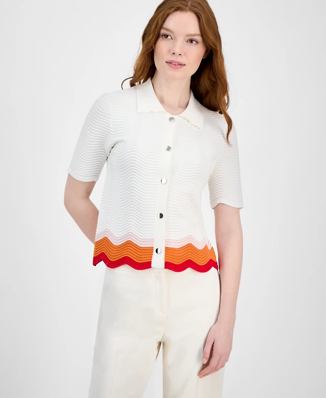 T Tahari Women's Striped-Hem Sleeveless Button Cardigan